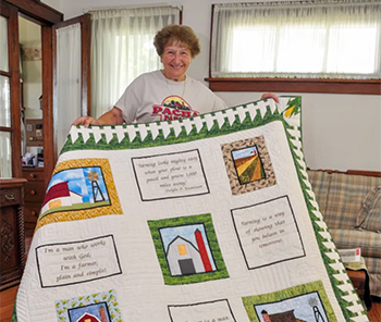 Her own foray into quilting came at age 9 from her great-grandmother, and later from a dear neighbor when she was expecting her son, William. She was a 4-H member, college 4-H volunteer and leader for many years, and still serves in numerous capacities at the county level.