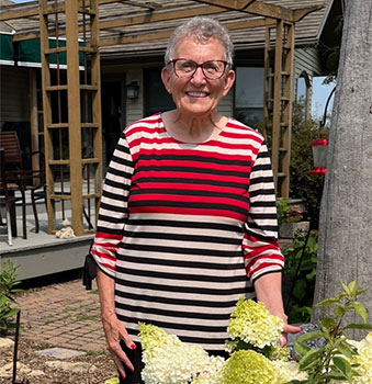 Baking and flower gardening also are happy pursuits. However, since one adds calories and the other burns them, she says she leans toward outside activities since she retired from teaching.